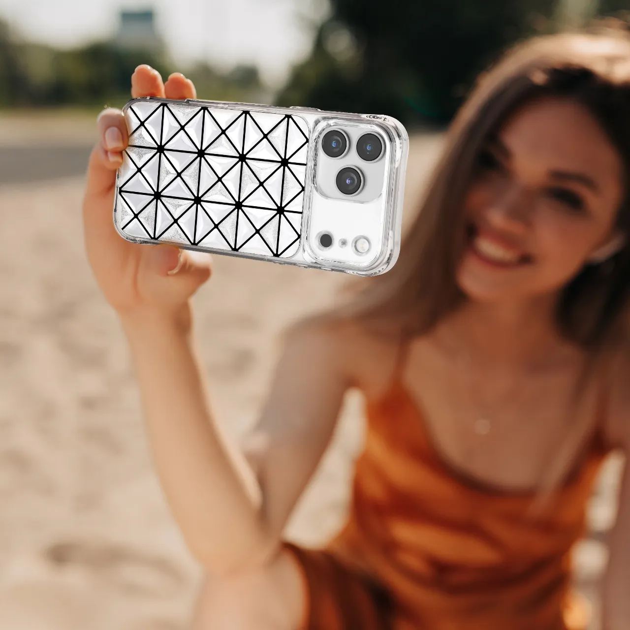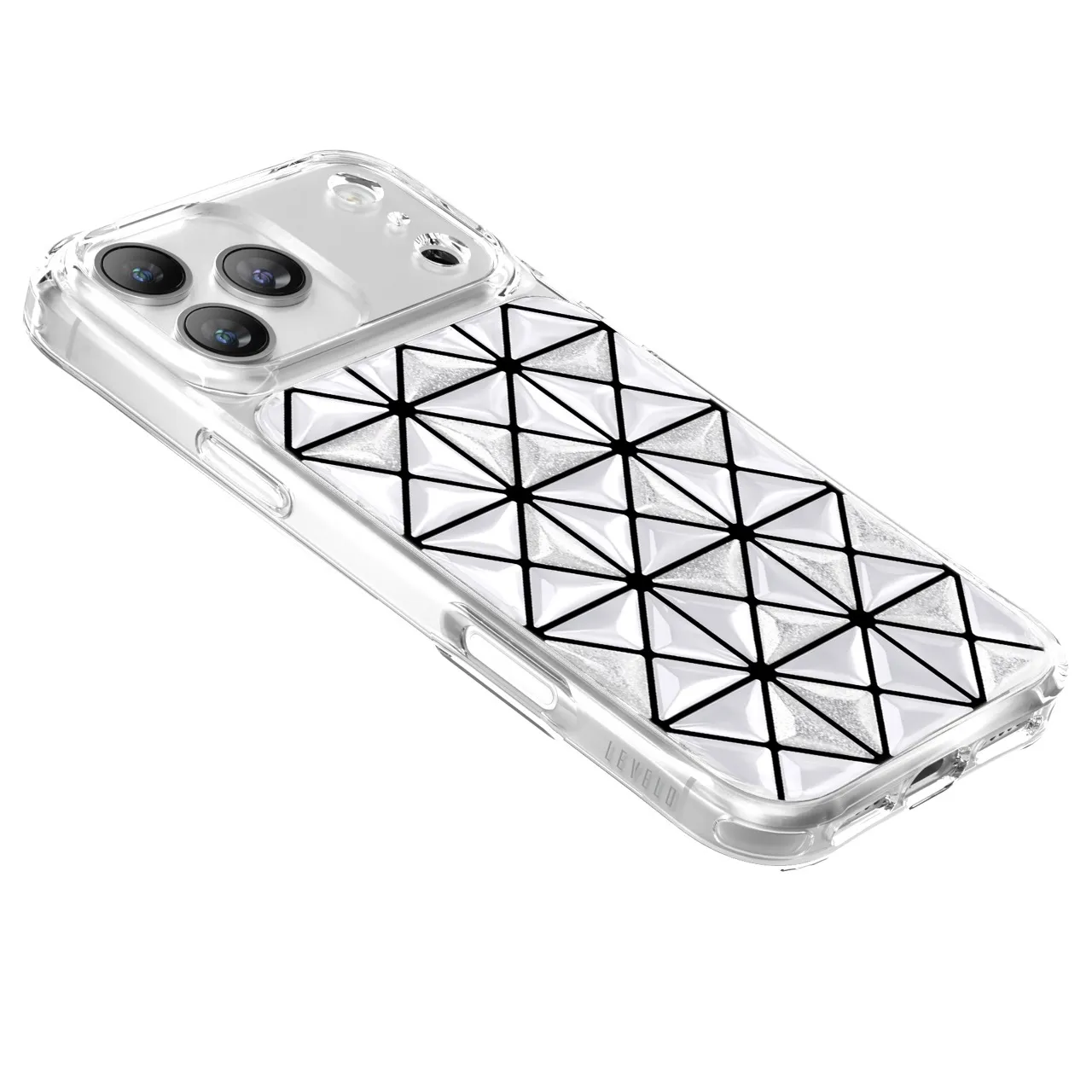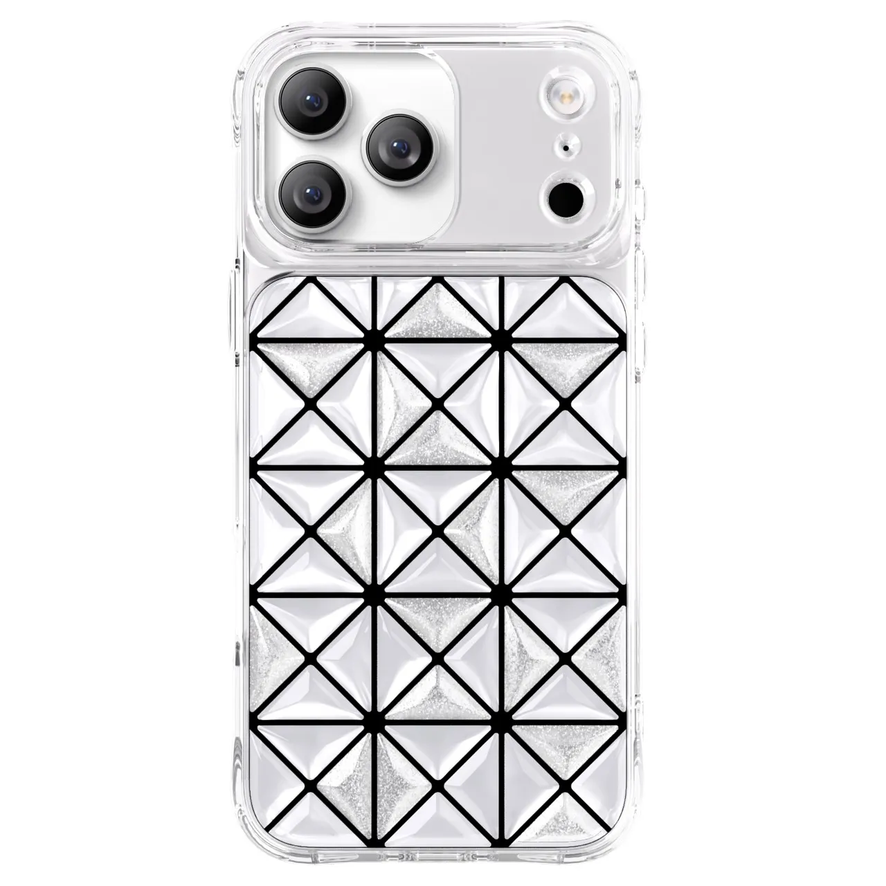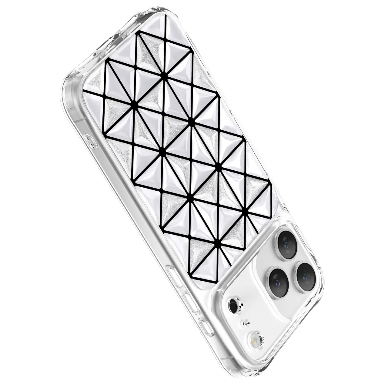 غطاء حماية آيفون 17 بروماكس هيكسا 3D IML تقنية إيفركلير, تصميم هندسي عصري باللون الأبيض