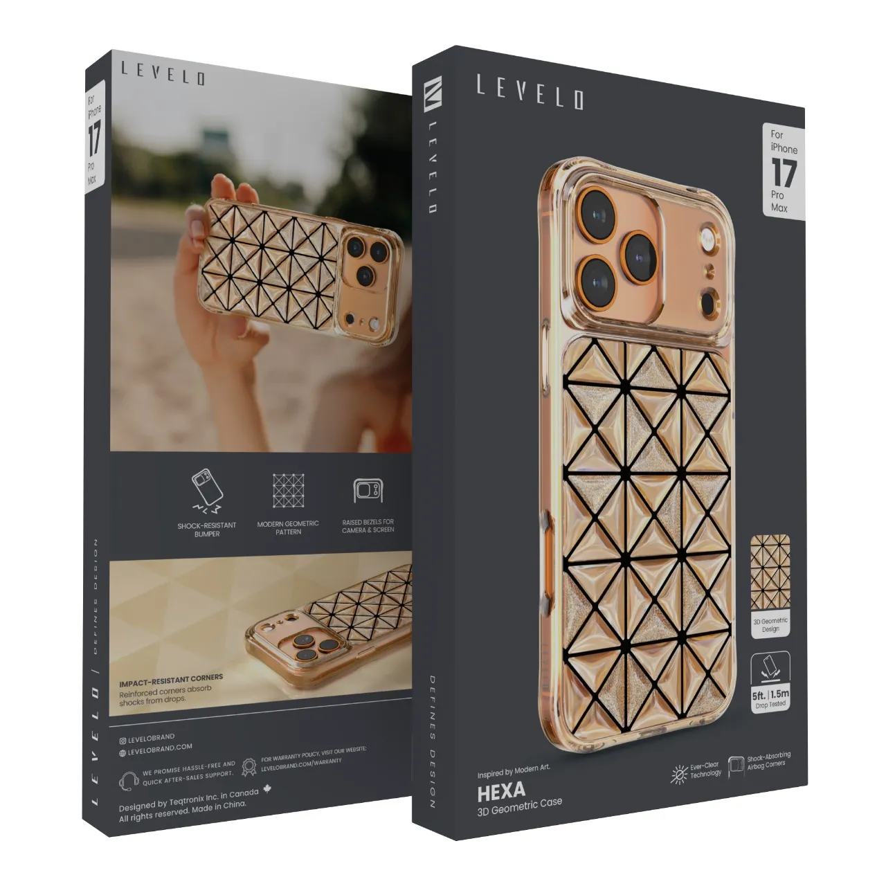 غطاء حماية آيفون 17 بروماكس هيكسا 3D IML تقنية إيفركلير, تصميم هندسي عصري باللون البرتقالي