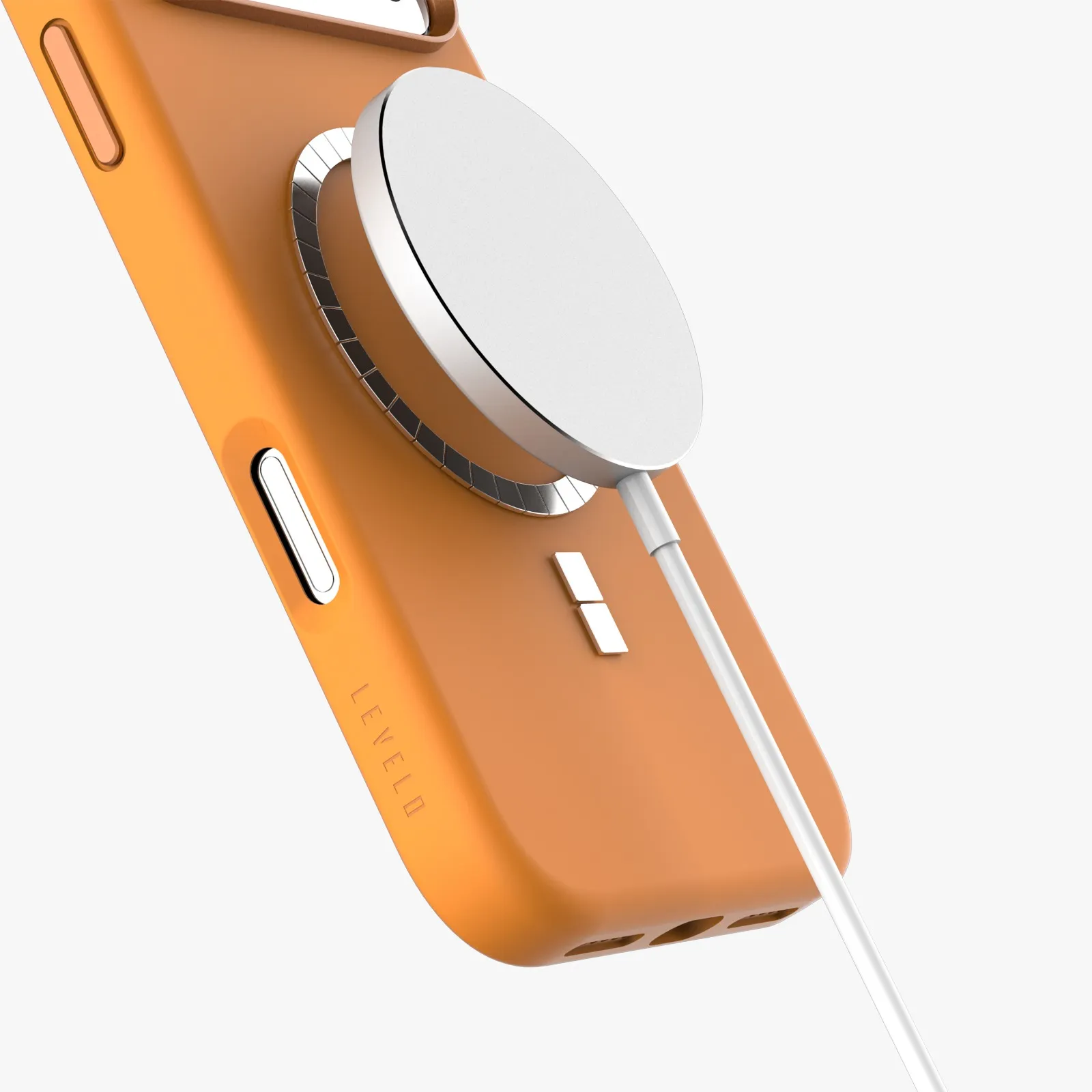 غطاء حماية ايفون 17 بروماكس سيليكون فاخر متوافق مع MagSafe – باللون البرتقالي المميز