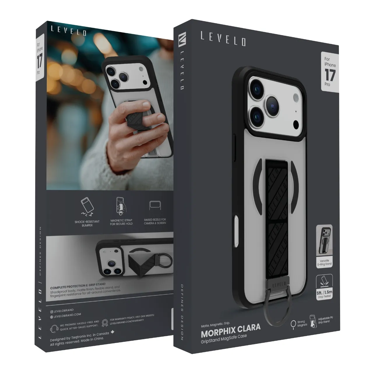 غطاء حماية ايفون17 بروماكس ماج سيف مورفيكس كلارا جريب – مع مصد مقاوم للصدمات ومغناطيس قوي – باللون الأسود