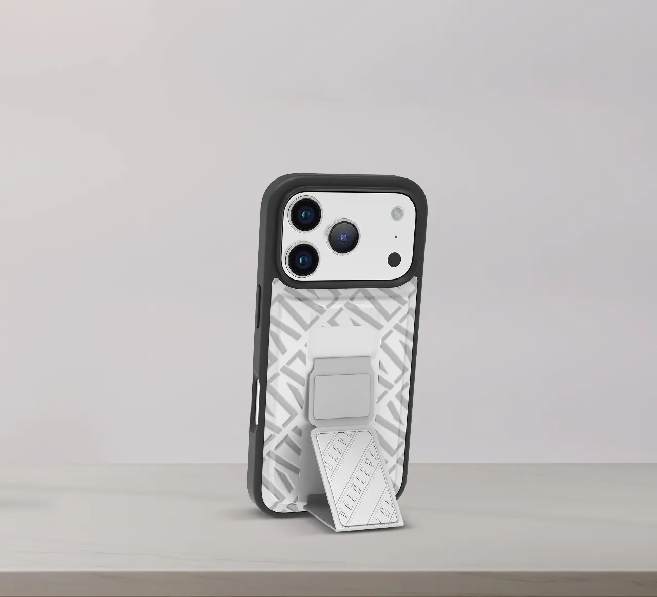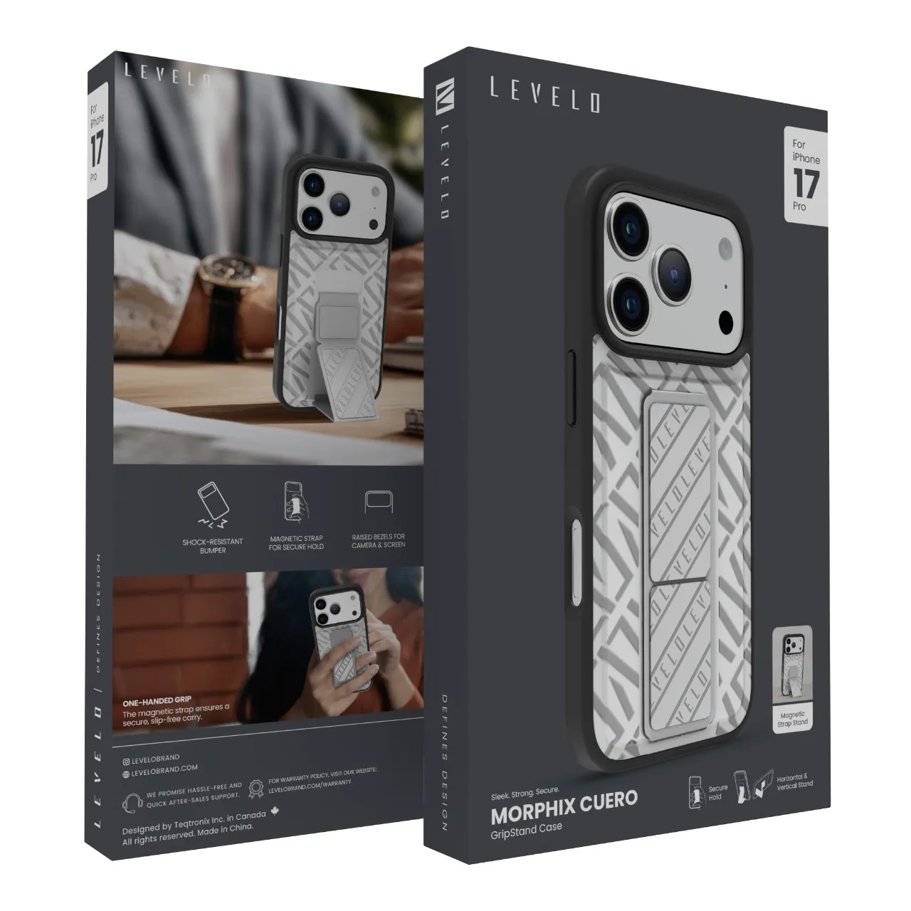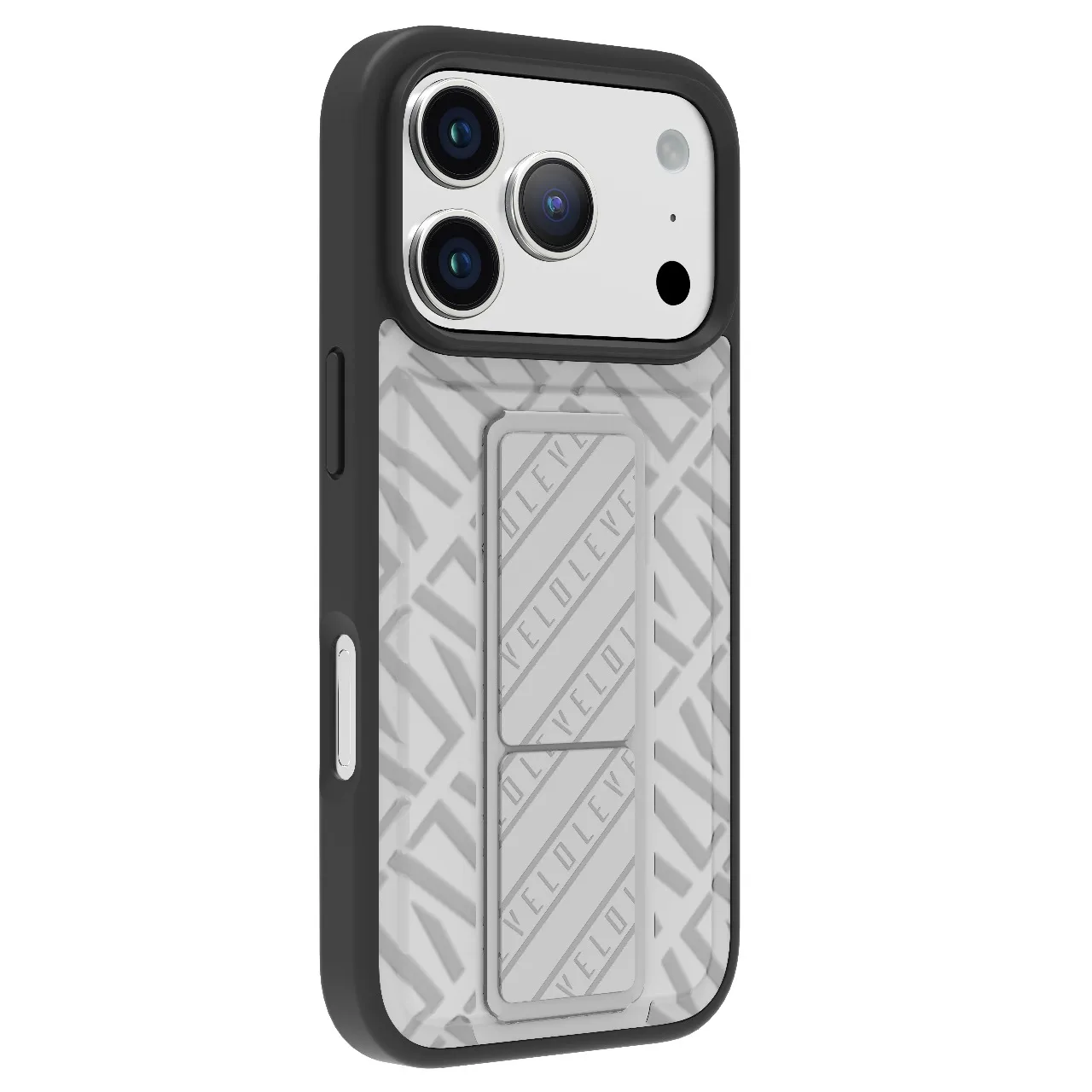 غطاء حماية ايفون17 بروماكس مع حزام مغناطيسي للتثبيت الآمن وحامل أفقي وعمودي بالون الفضي