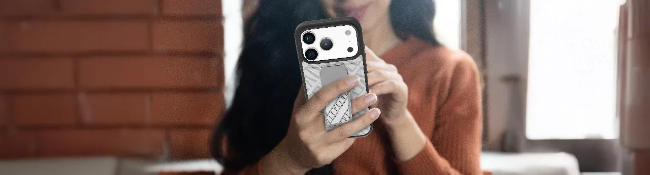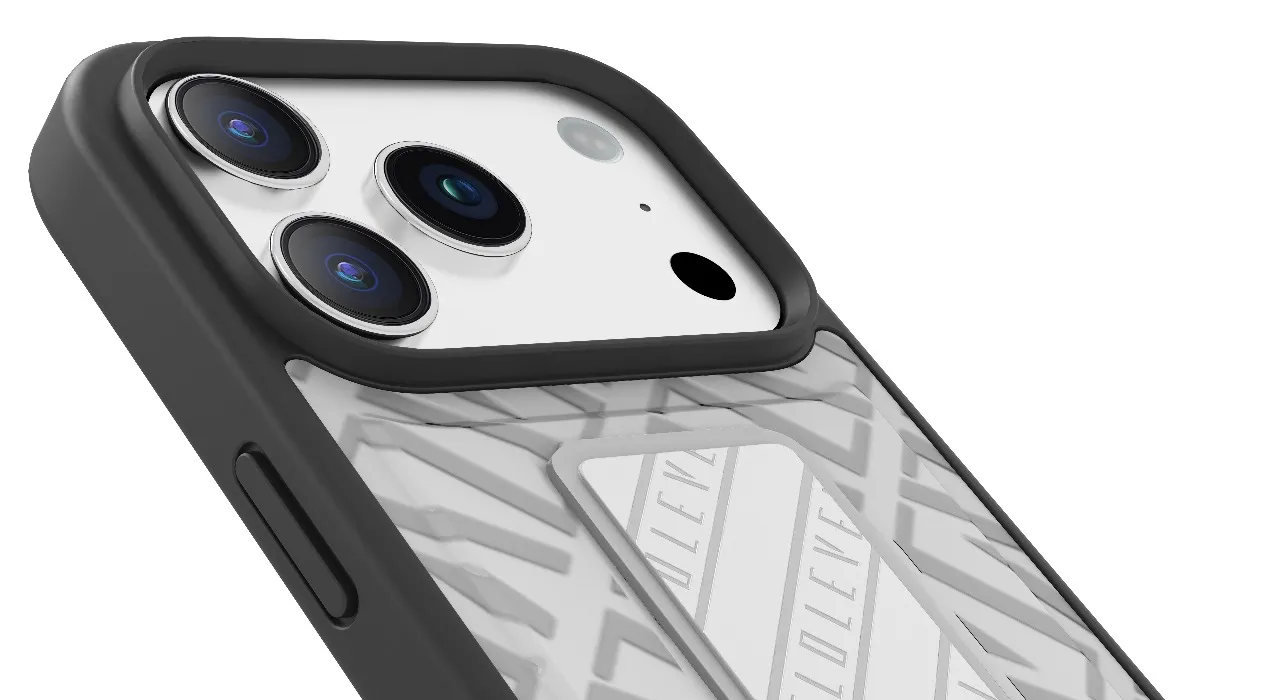 غطاء حماية ايفون17 برو مع حزام مغناطيسي للتثبيت الآمن وحامل أفقي وعمودي بالون الفضي ر.س79.00