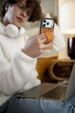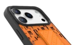 غطاء حماية ايفون17 بروماكس مع حاملة بطاقات وحزام مغناطيسي للتثبيت / قبضة بيد واحدةوغطاء خلفي بتصميم فاخر مع شعار مطبوع باللون البرتقالي ر.س99.00