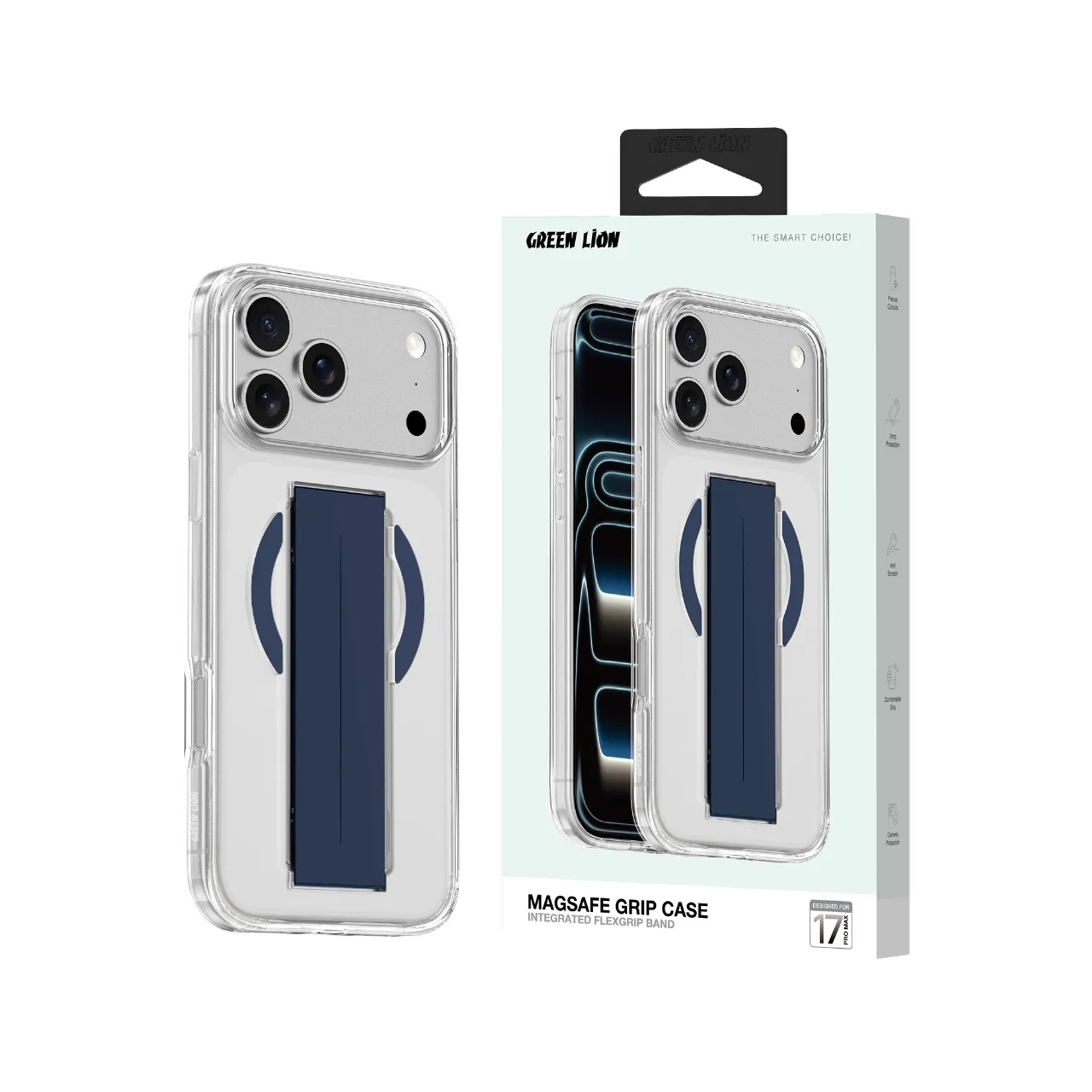 غطاء حماية لهاتف ايفون 17بروماكس Green Lion MagSafe Leather Grip- مع مقبض بلون ازرق