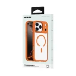 MagSafe – غطاء حماية لهاتف ايفون 17بروماكس شفاف مع حواف باللون البرتقالي المميز متوافق مع