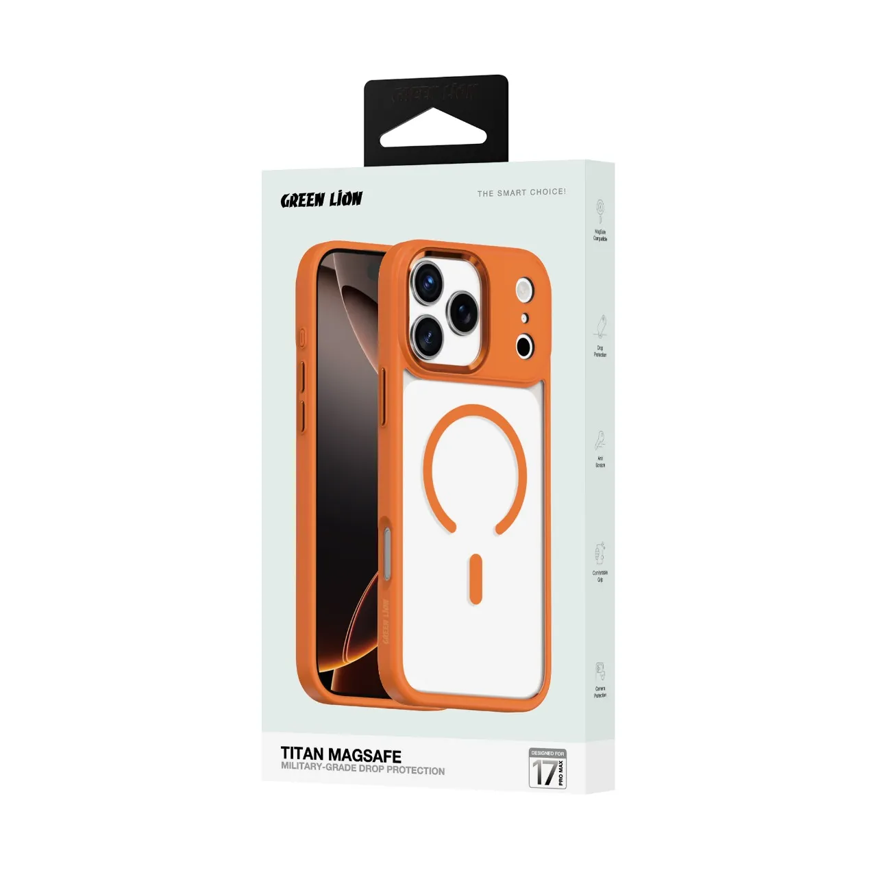 غطاء حماية لهاتف ايفون 17بروماكس Green Lion Titan Magsafe Case- برتقالي