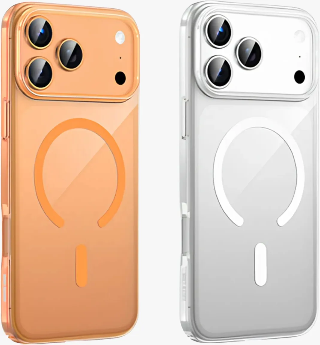 MagSafe – غطاء حماية لهاتف ايفون 17بروماكس شفاف مع حواف باللون البرتقالي المميز متوافق مع