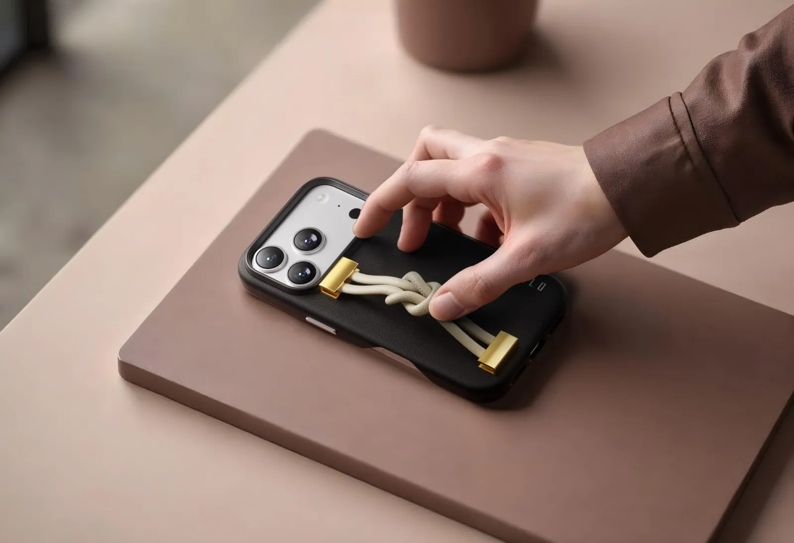 غطاء حماية لهاتف ايفون 17 برو ماكس مع سوار يد باللون الازرق
