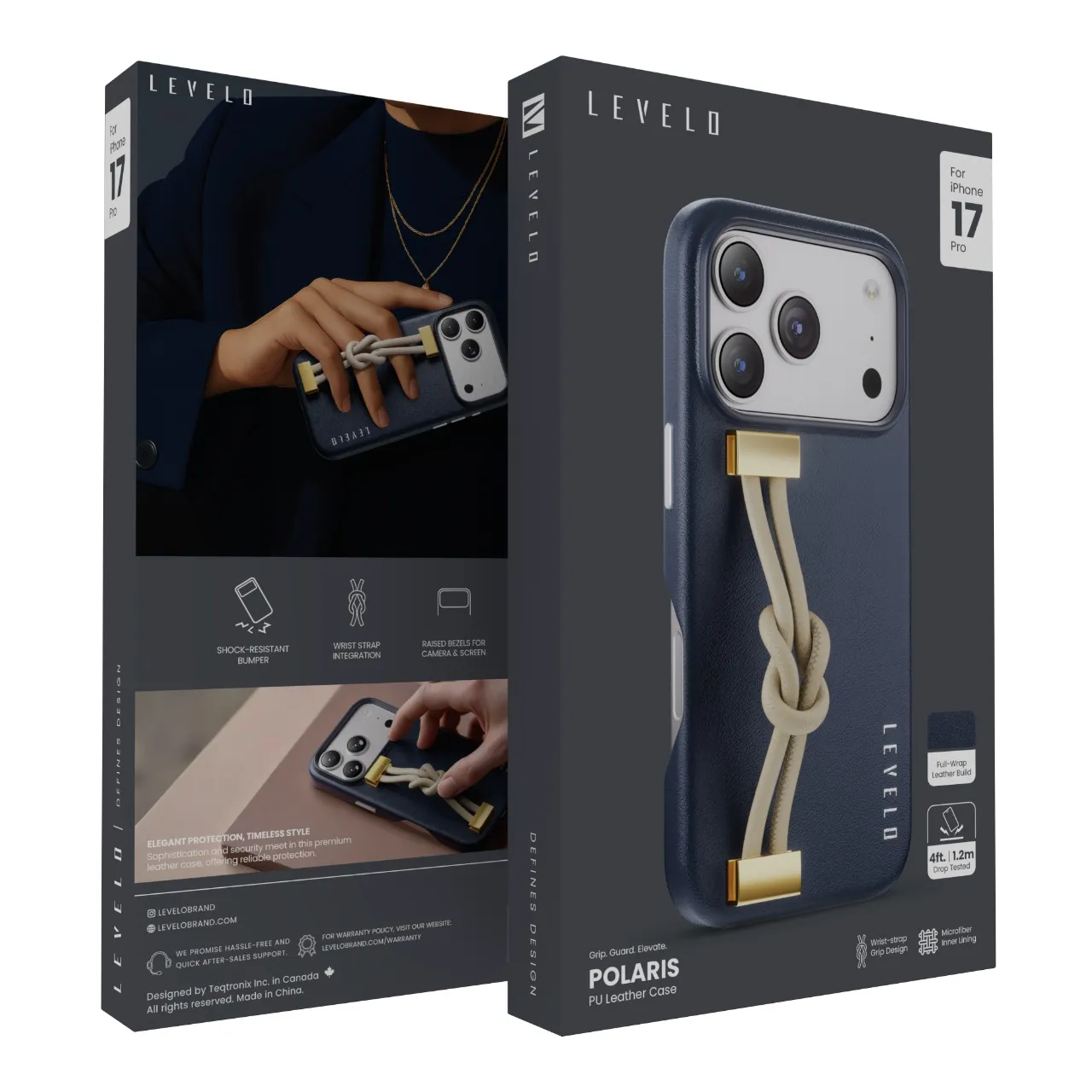 غطاء حماية لهاتف ايفون 17 برو مع سوار يد باللون الازرق