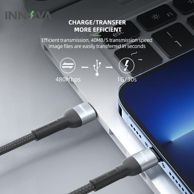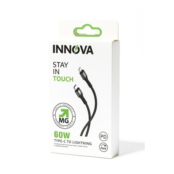 استمتع بشحن فائق السرعة وآمن مع كابل INNOVA-1002 من Type-C إلى Lightning.