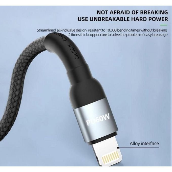 يأتي الكابل بتصميم متين من سلك نايلون مضفر مقاوم للتشابك والتلف لضمان عمر طويل واستخدام يومي مريح.