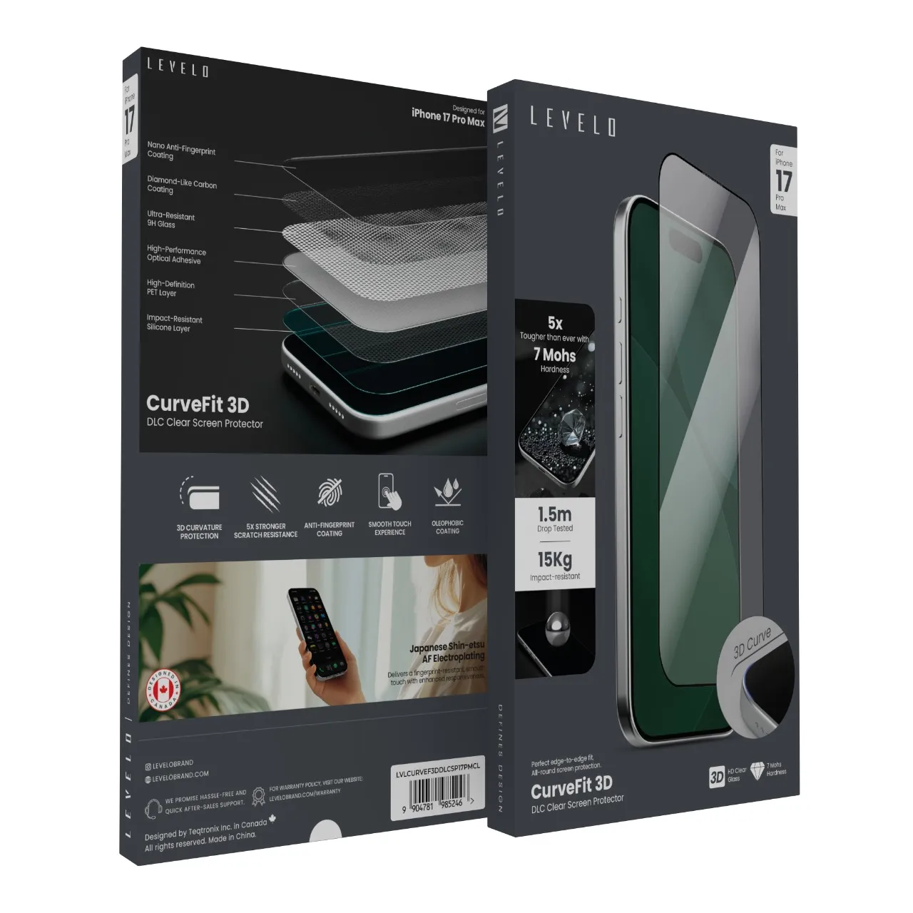 واقي الشاشة ثلاثي الأبعاد Levelo Curve Fit 3D DLC لجهاز iPhone 17Pro Max، لاصق بصري عالي الأداء، طبقة سيليكون مقاومة للصدمات، تغطية حافة إلى حافة، تجربة لمس سلسة، مقاوم لبصمات الأصابع، طلاء أوليوفوبك -شفاف