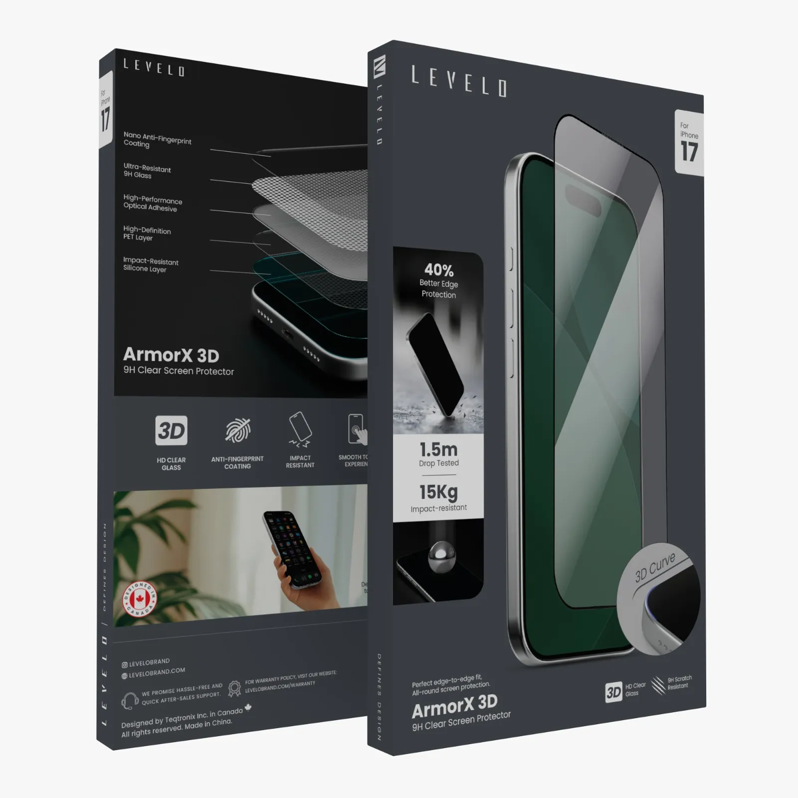 واقي شاشة ArmorX 3D لـ iPhone 17 مع طبقة مقاومة 9H فائقة وطلاء مضاد للبصمات من النانو، طبقة أوليوفوبية، تجربة لمس ناعمة، حماية حواف أفضل بنسبة 40%، طبقة سيليكون مقاومة للصدمات– شفاف