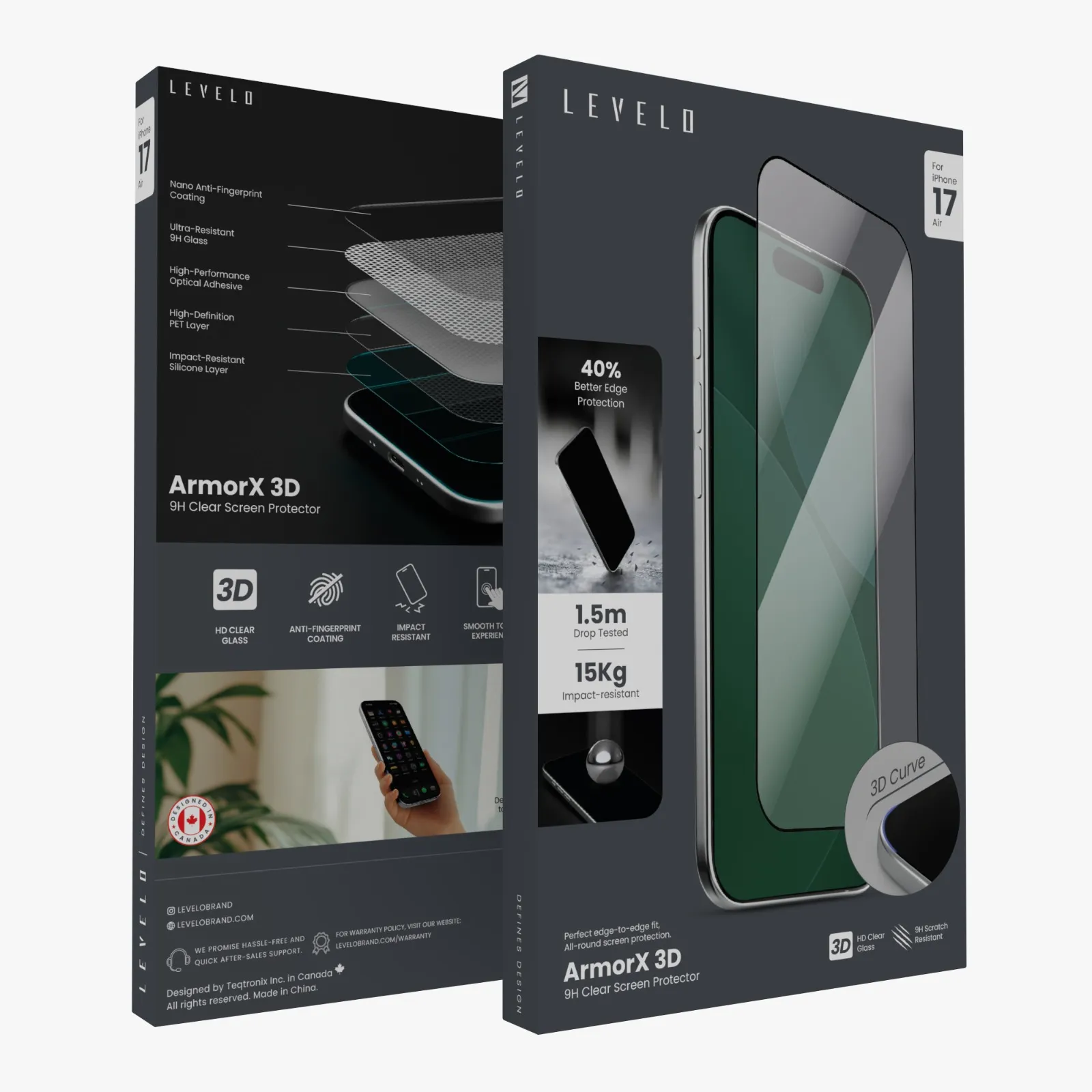واقي شاشة ArmorX 3D لـ iPhone 17 Air مع طبقة مقاومة 9H فائقة وطلاء مضاد للبصمات من النانو، طبقة أوليوفوبية، تجربة لمس ناعمة، حماية حواف أفضل بنسبة 40%، طبقة سيليكون مقاومة للصدمات– شفاف