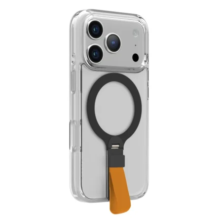 غطاء حماية لهاتف ايفون 17برو شفاف مع حاملة معدنية دوارة باللون البرتقالي 360°