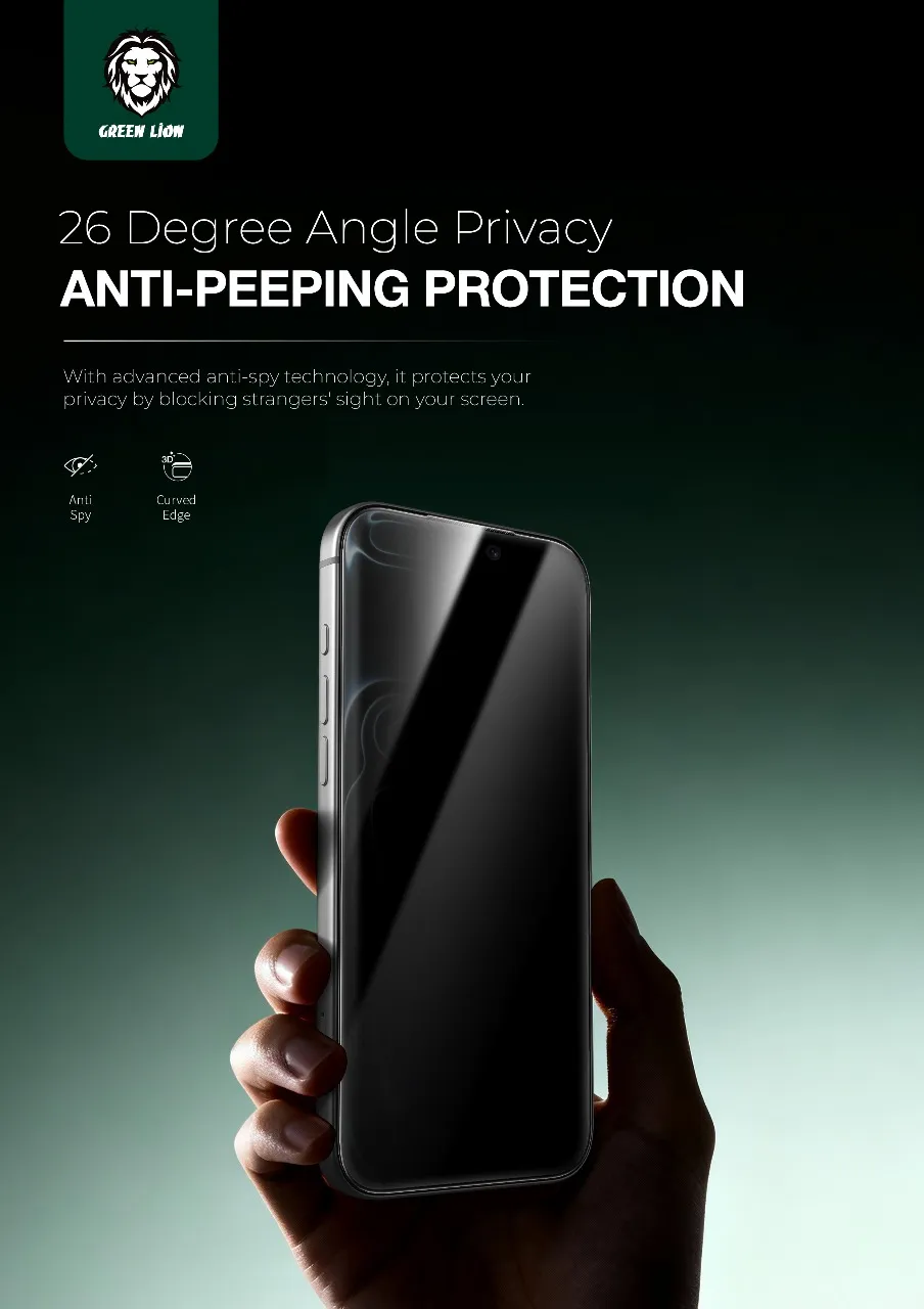 Green Lion Sir Louis 3D Curved Privacy واقي شاشة الخصوصية ايفون 17 -اسود