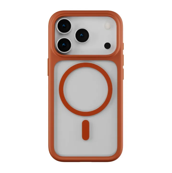 MagSafe – غطاء حماية لهاتف ايفون 17بروماكس شفاف مع حواف باللون البرتقالي المميز متوافق مع ر.س79.00